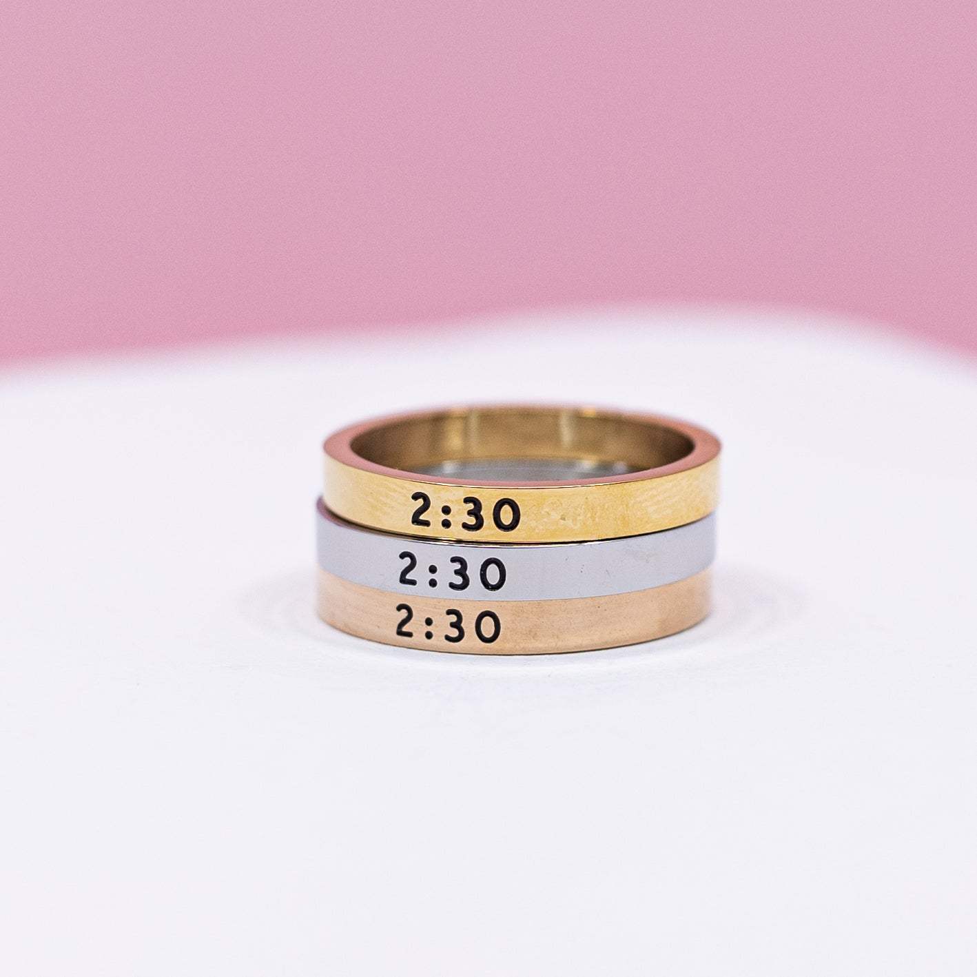 PLEASE NOTE: Hand sanitizers, lotions, and any products with chemicals will remove the black lettering. Please remove the ring when applying hand products.