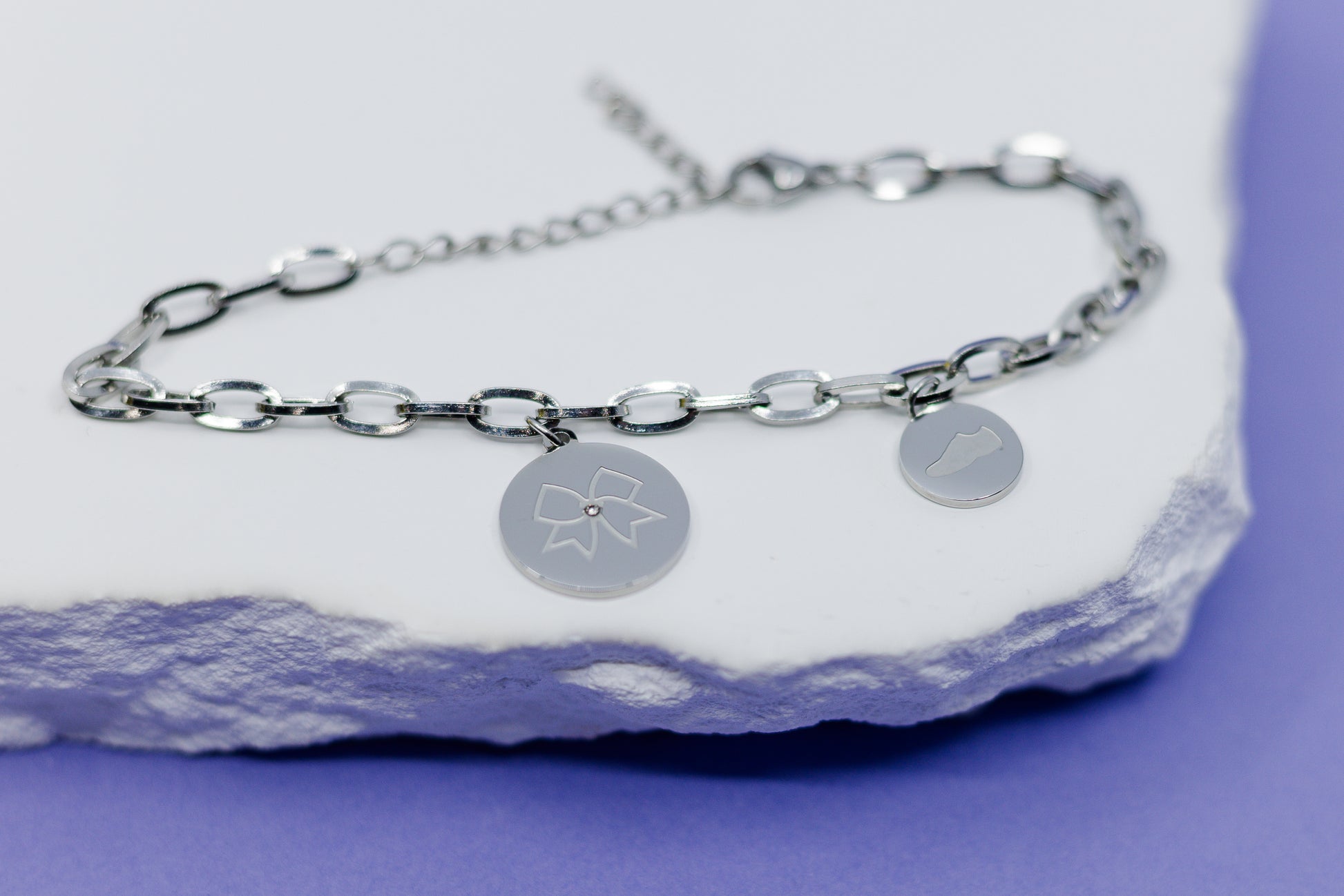Like a hype squad for your wrist, this is the ultimate cheer charm bracelet. Custom-designed by "The Cheer Mom Blog," this cheer bracelet doesn't just accessorize; it cheers for you, every time you glance down. You don’t just wear this bracelet; you live it...from BOW to TOE.