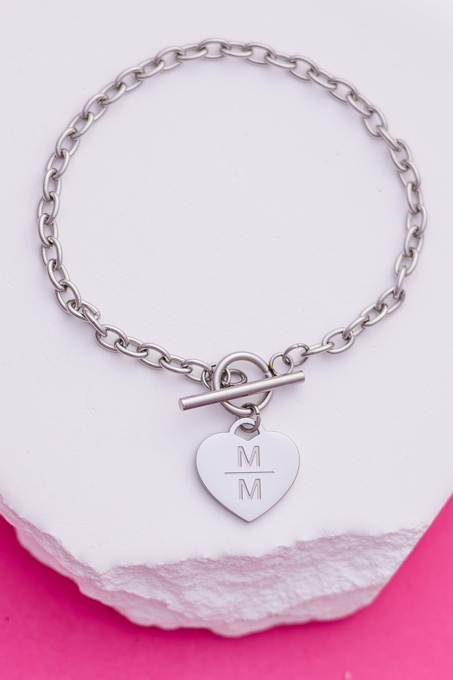 Heart-shaped pendant is 16mm in diameter, 1mm thick, engraved with "M|M" on one side and "SR" on the other side