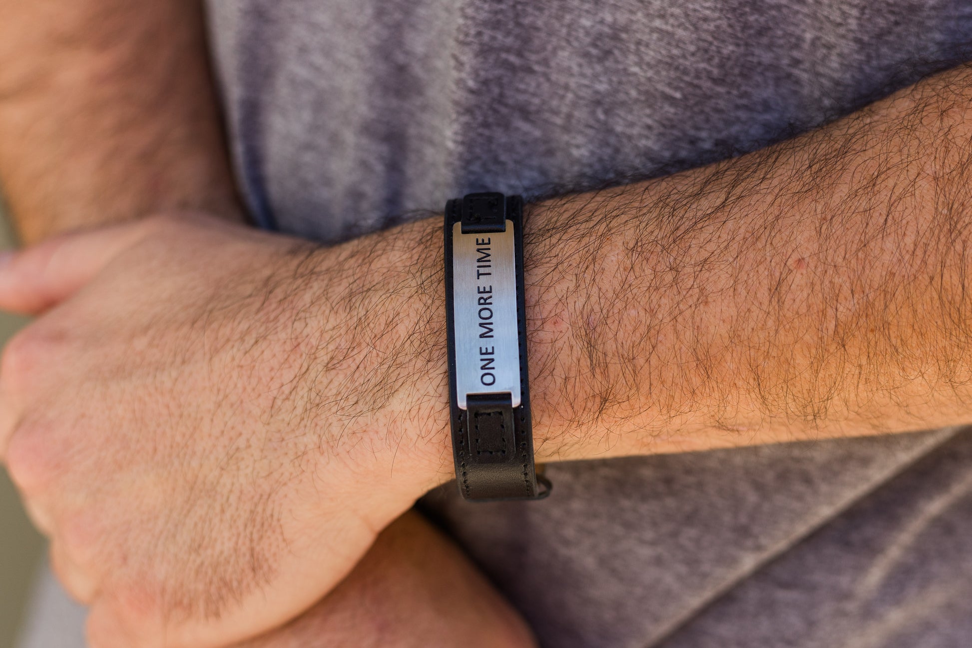 Engraved bar is 1.76 inches long, 0.11 inches thick, 0.55 inches tall, and engraved with "ONE MORE TIME" on one side