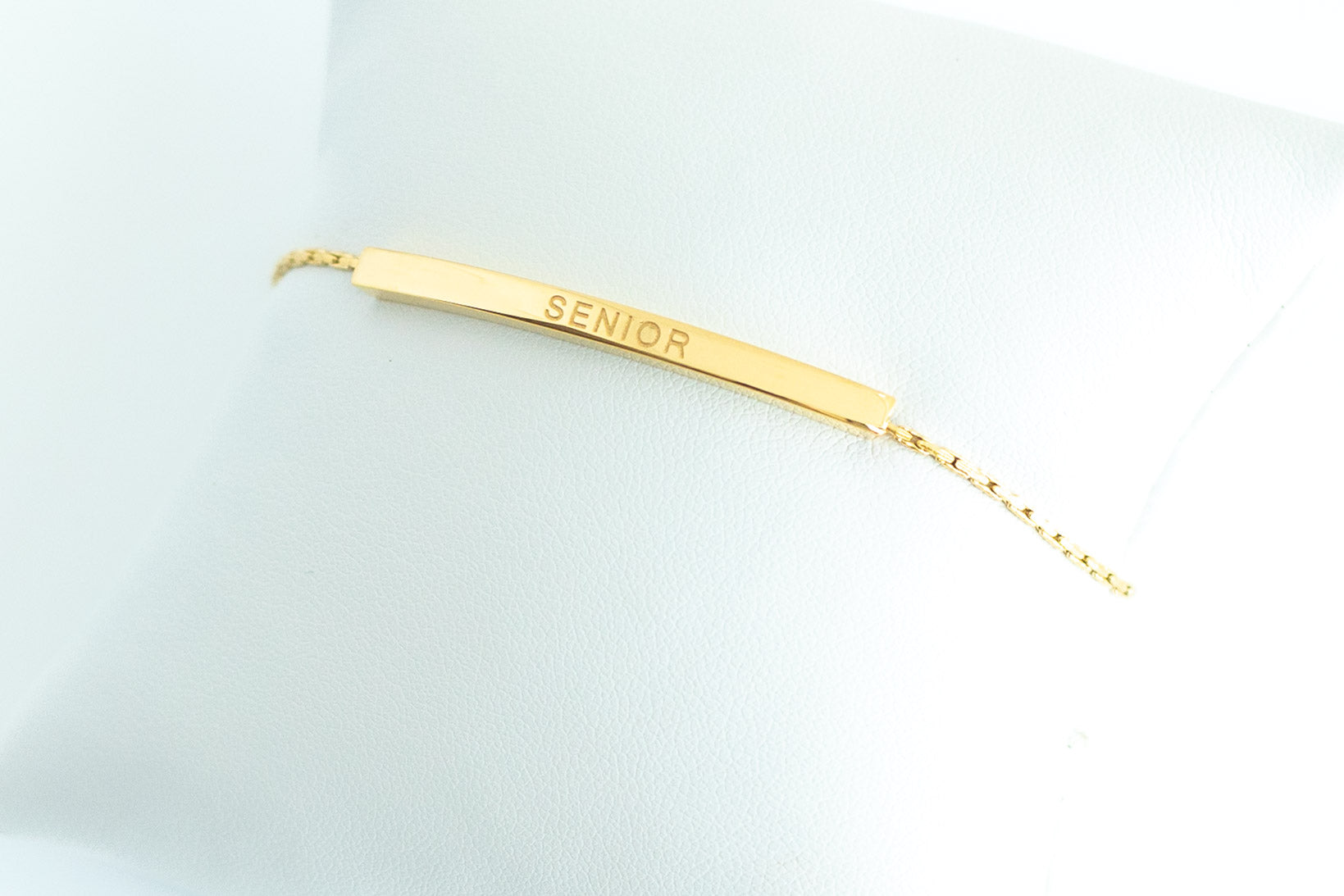 Engraved bar is 1.57 inches long, 0.11 inches thick, 0.11 inches tall, and engraved with "SENIOR" on one side